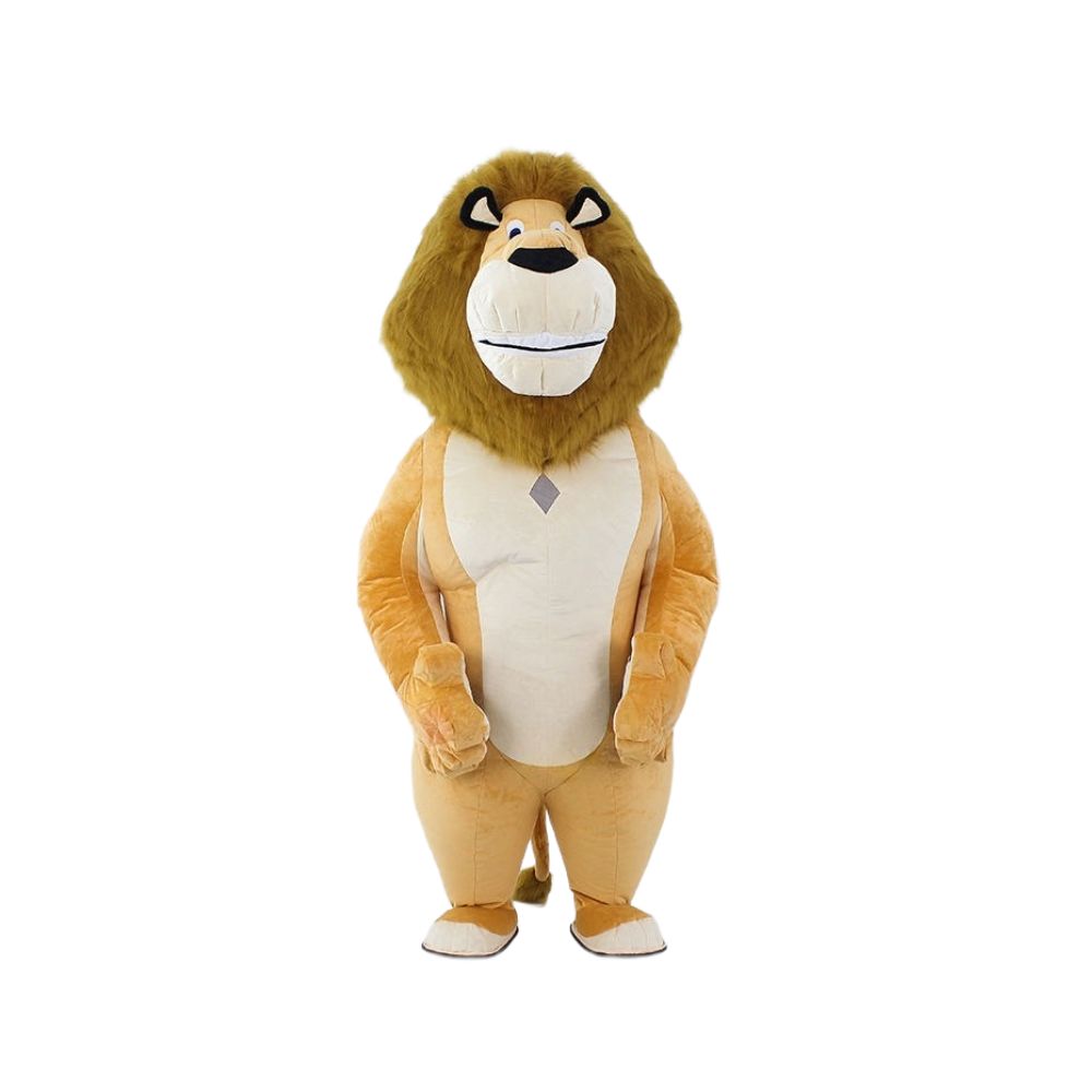 Lion mascot costume with superior quality and comfort. Available in 2M, 2.5M, and 3M sizes.